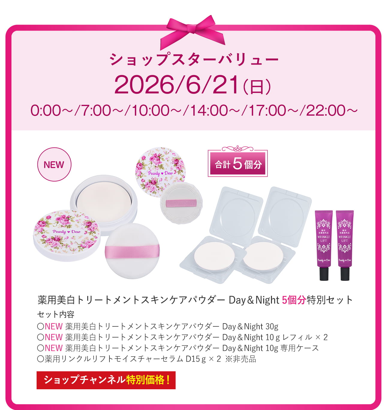 | パーリーデュー 薬用美白トリートメントスキンケアパウダー Day&Night 5個分特別セット/メーカー希望小売価格28,200円(税込) |