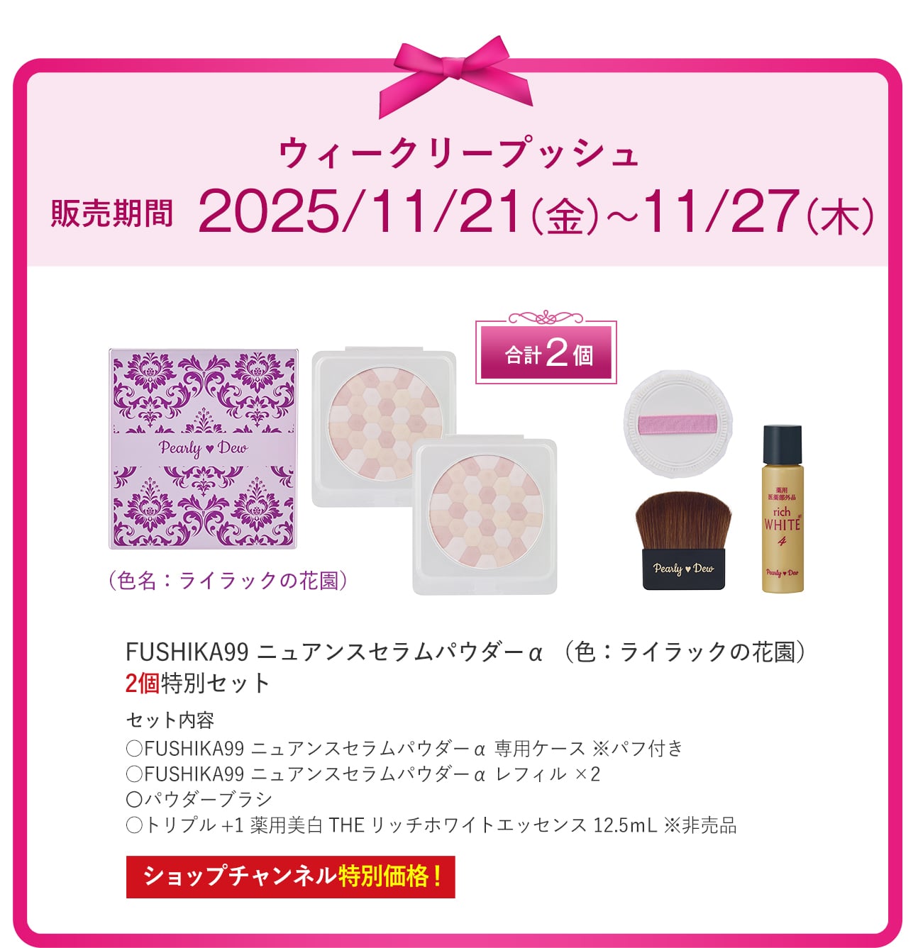 パーリーデュー FUSHIKA99 ニュアンスセラムパウダーα コンパクト&レフィル2個特別セット/メーカー希望小売価格17,160円(税込) |