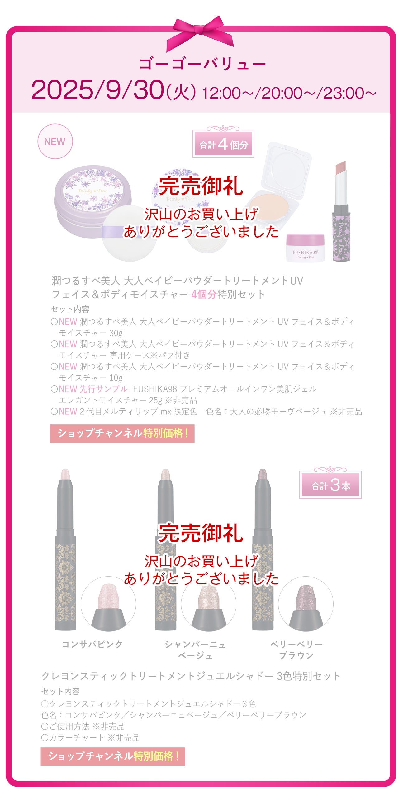 パーリーデュー 潤つるすべ美人 大人ベイビーパウダー トリートメントUV フェイス&ボディ モイスチャー 特別セット/メーカー希望小売価格21,800円(税込) |