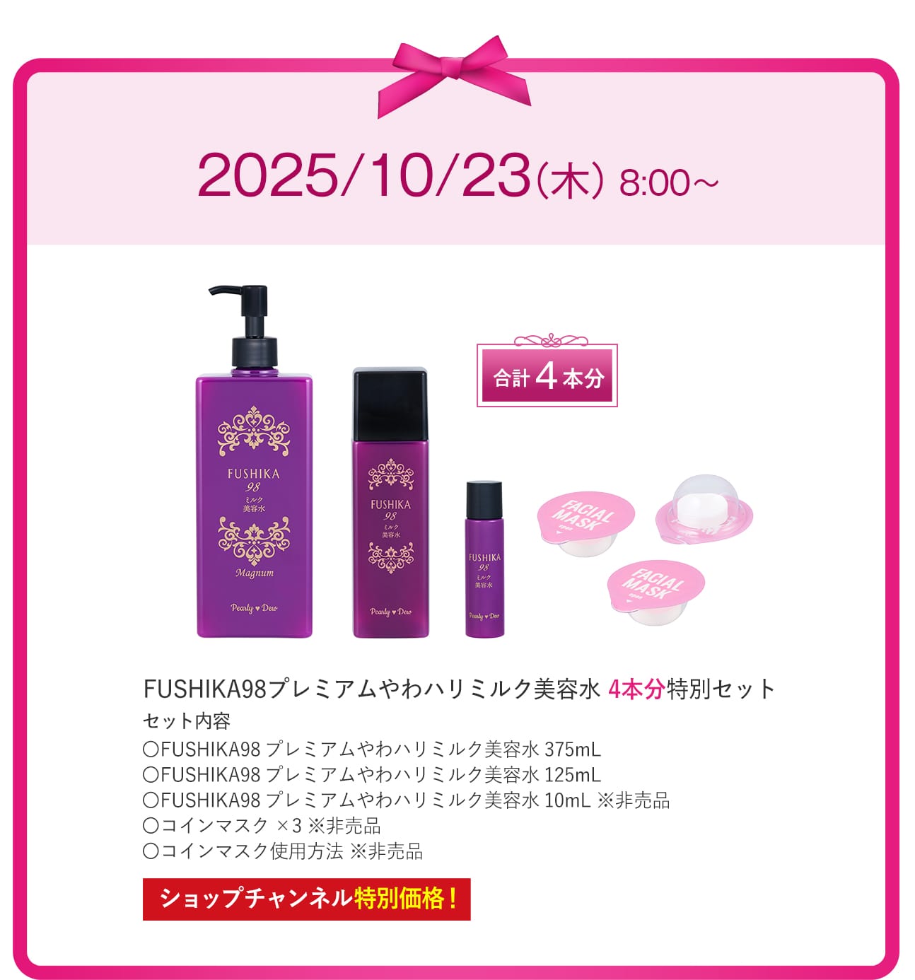 パーリーデューFUSHIKA98プレミアムやわハリミルク美容水375mL/メーカー希望小売価格19,300円(税込) |