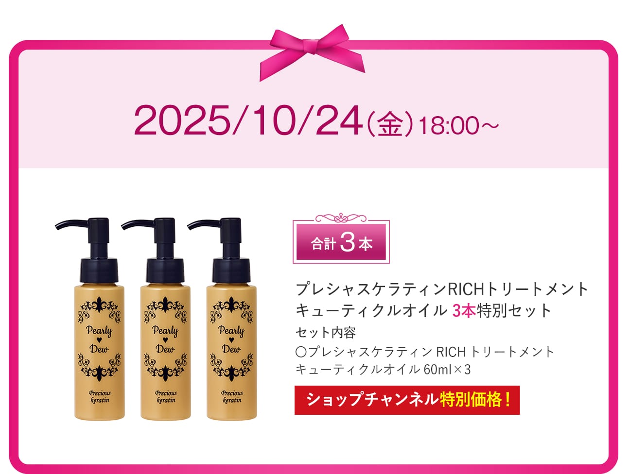 パーリーデュー プレシャスケラティンRICHトリートメントキューティクルオイル(60mL)/メーカー希望小売価格7,150円(税込) |