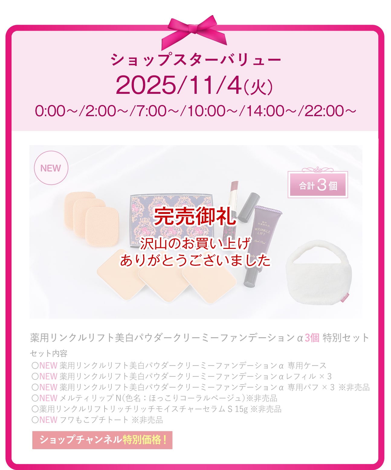 | パーリーデュー 薬用リンクルリフト美白パウダークリーミーファンデーションα 3個特別セット/メーカー希望小売価格25,300円(税込) |