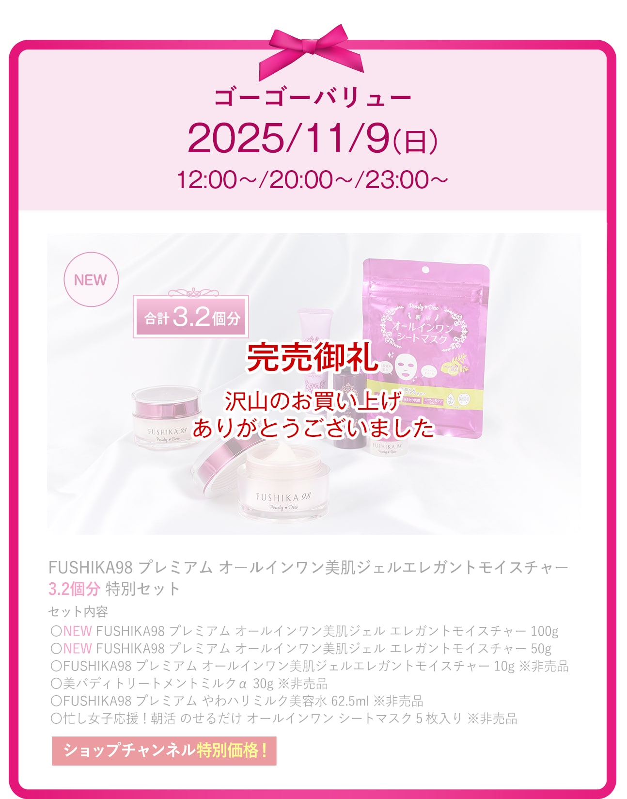 | パーリーデュー FUSHIKA98 プレミアム オールインワン 美肌ジェル エレガントモイスチャー3.2個分特別セット/メーカー希望小売価格39,780円(税込) |