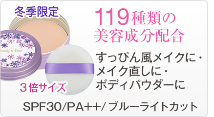 | パーリーデュー さらさら美人 大人ベイビーパウダートリートメントUVフェイス&ボディ RIBBONパフ/メーカー希望小売価格880円(税込) |