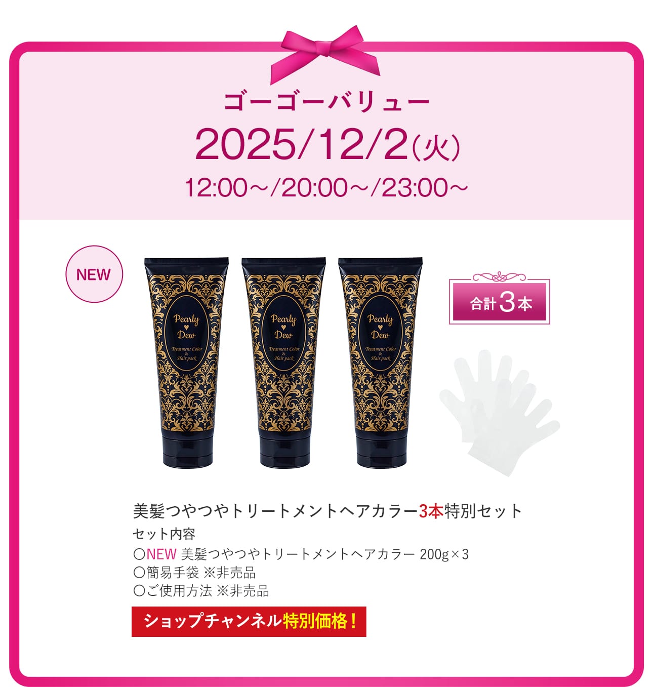 | パーリーデュー美髪つやつやトリートメントヘアカラー3本特別セット/メーカー希望小売価格23,040円(税込) |