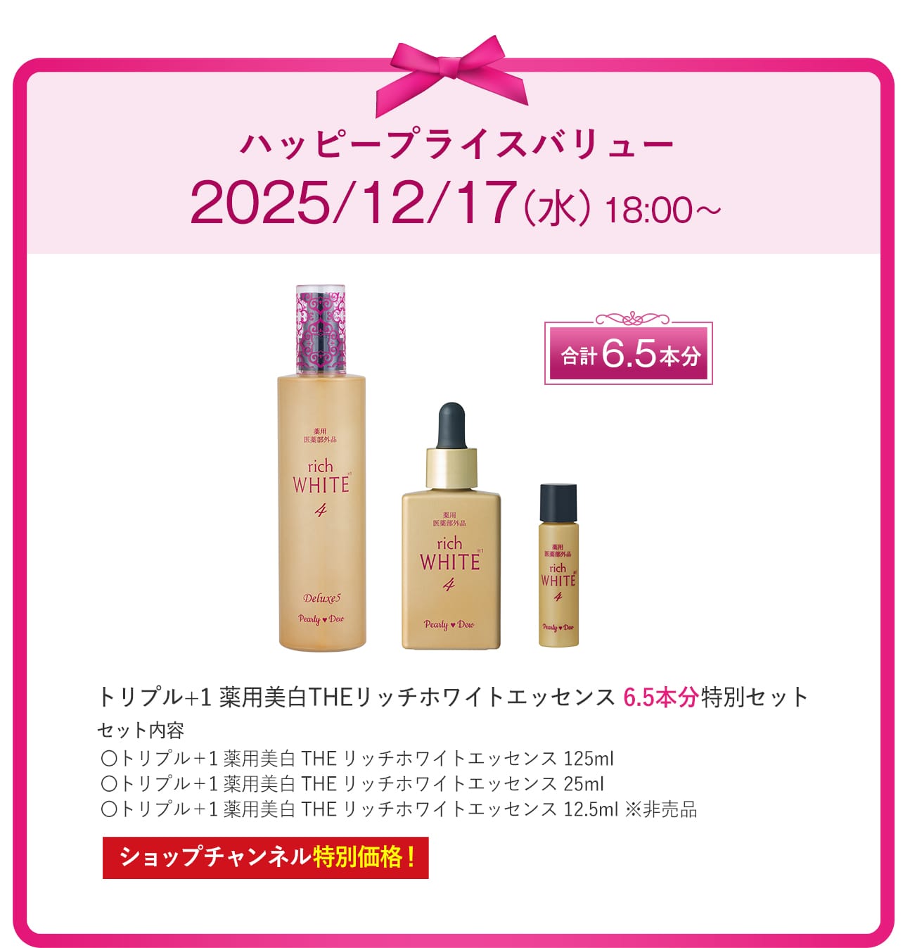 | パーリーデュートリプル+1薬用美白THEリッチホワイトエッセンス 112.5ml /メーカー希望小売価格35,800円(税込) |